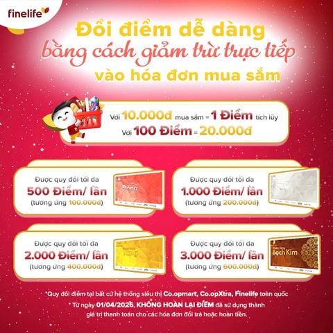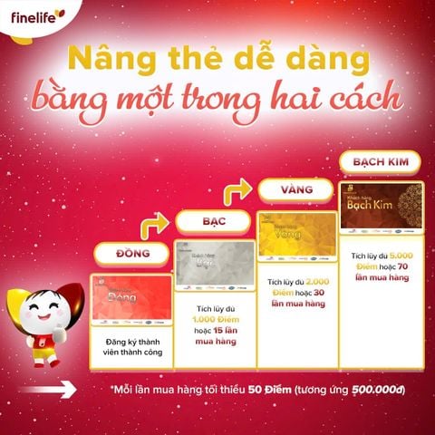 → Finelife tặng thêm Phiếu mua hàng trị giá 500.000đ nếu Khách hàng đạt cấp độ Bạch Kim trong vòng 09 tháng kể từ ngày đăng ký tham gia chương trình trong năm 2026.